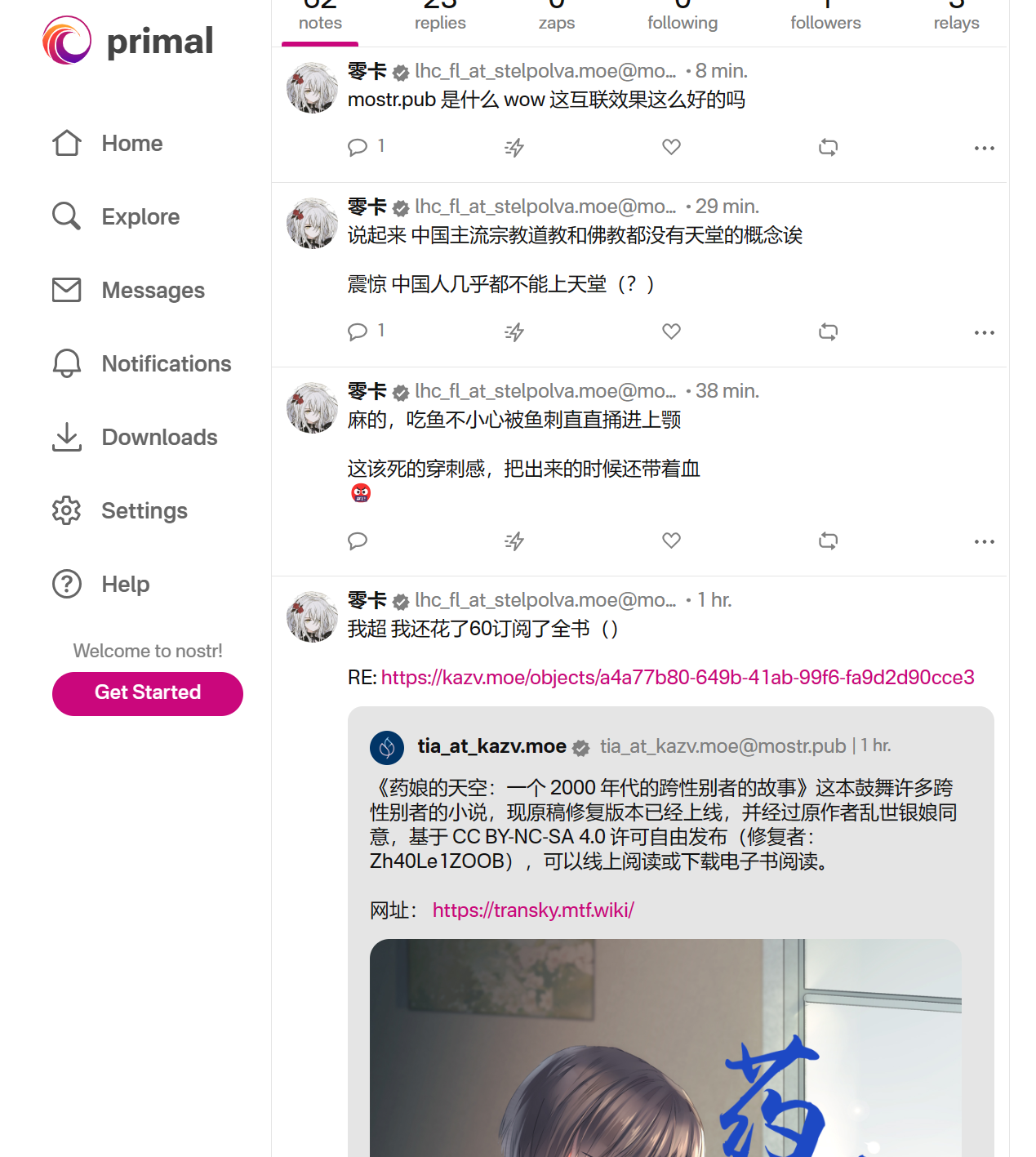 fedi 过来的倒是可以, 但是 nostr 过去的就不行了, 比如: